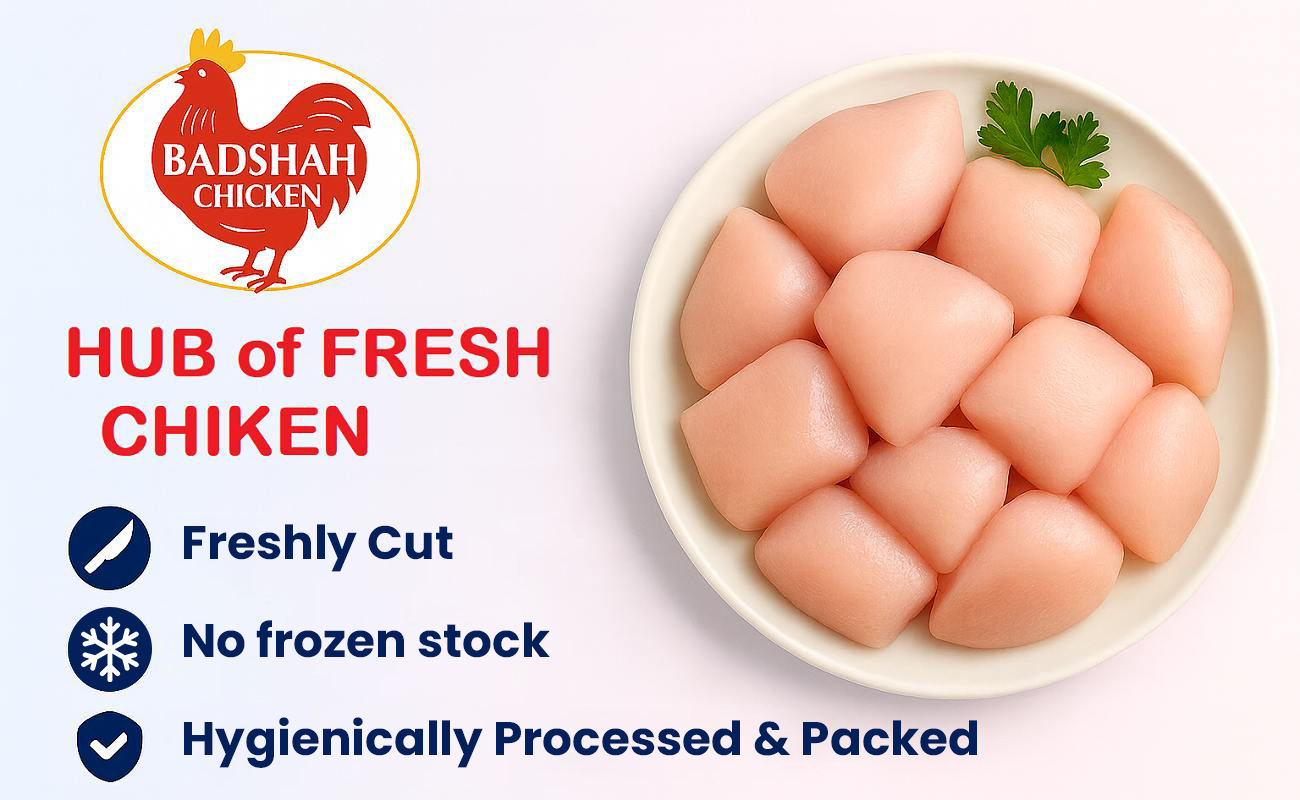 At Badshah Chicken, we take pride in being The HUB of FRESH Chicken. Our mission is simple — to deliver the freshest, healthiest, and most hygienically processed chicken to your doorstep in just 90 minutes. We source only from trusted farms and ensure that every product meets the highest standards of quality, tenderness, and taste. With state-of-the-art cold-chain systems and zero middlemen, Badshah Chicken guarantees true farm-to-table freshness. Whether you’re a home chef or a restaurant owner, we bring premium-quality chicken that inspires confidence — every single time.
